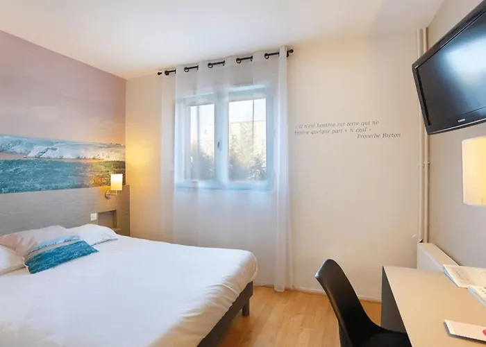 Nestled in the business district of Plerin, 3 km from the Rosaires Beach, the 4-star Brit Hotel & Spa Saint Brieuc Plerin offers a terrace. Featuring 63 rooms with views of the city, the hotel is within a 10-minute drive of the Les Chaos du Gouet.