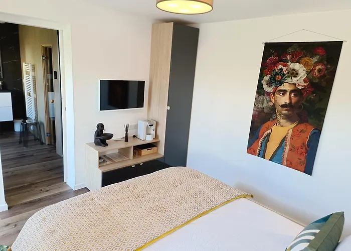 This hotel is located in the very heart of Quimper, only 1.8 km from the Breton Departmental Museum and only 300 metres from the Saint-Laurent Valley. Quimper Town Hall is around 20 minutes on foot from the Ginkgo - Spa Biloba, which is also situated just a few steps from Quimper Courthouse. The accommodation is set amidst popular attractions, such as cafés, brasseries, and restaurants. This Quimper hotel is near a boat dock and Rond-Point du Frugy bus stop is just 200 metres away.