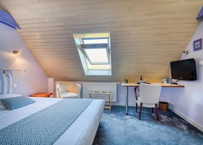 Disposant un Wi-Fi dans tout l'établissement, Logis Hôtel de la Pointe du Cap Coz Fouesnant offre un hébergement à environ 6 km du musée de la pêche de Concarneau. Doté de 19 chambres avec vue sur la mer, l'hotel est situé à environ 10 minutes en voiture de l'écomusée d'Ouessant.